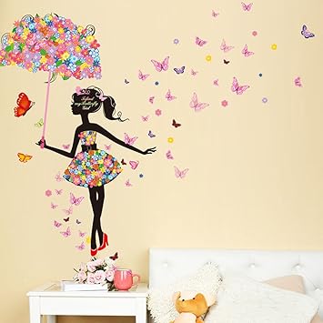 Wallpark Bunt Blume Schmetterling Fee Mädchen Halten Blume Regenschirm Abnehmbare Wandsticker Wandtattoo, Kinder Kids Baby Hause Zimmer Kinderzimmer DIY Dekorativ Klebstoff Kunst Wandaufkleber: Amazon.de: Baby
