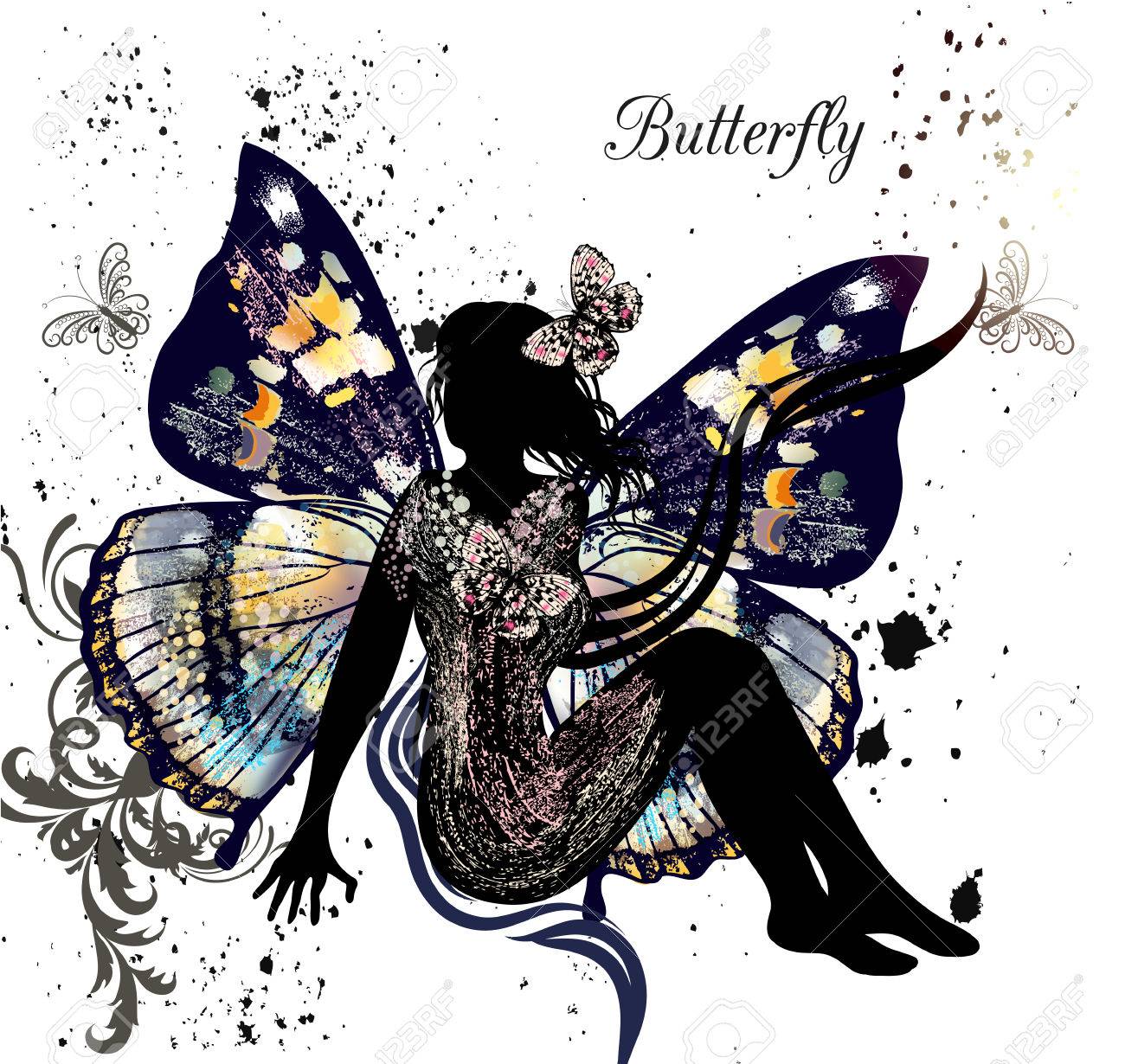 Schönes Mädchen Silhouette Mit Schmetterling Lizenzfrei Nutzbare Vektorgrafiken, Clip Arts, Illustrationen. Image 12356778.